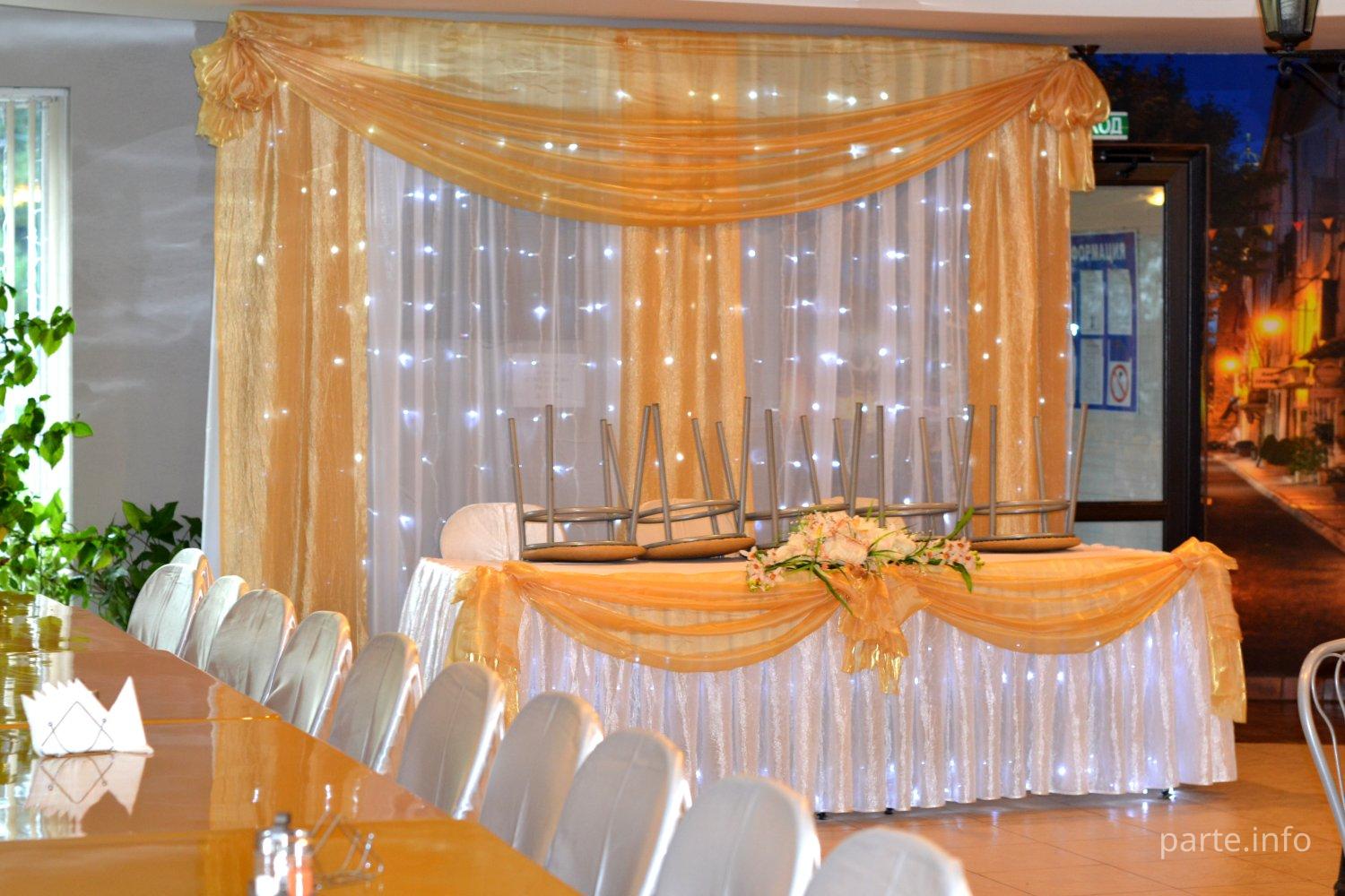 Оформление тканями, шарами.