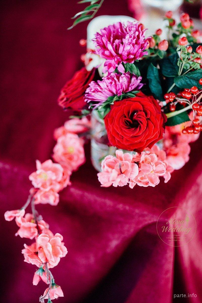 Яркая осенняя свадьба Ильи и Юли "Бордовый шик"