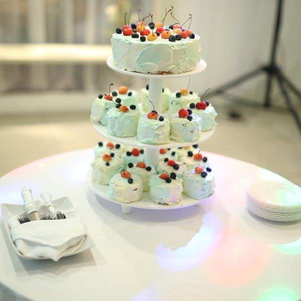 Свадебный торт с мини тортиками ,украшенный сезонными ягодами