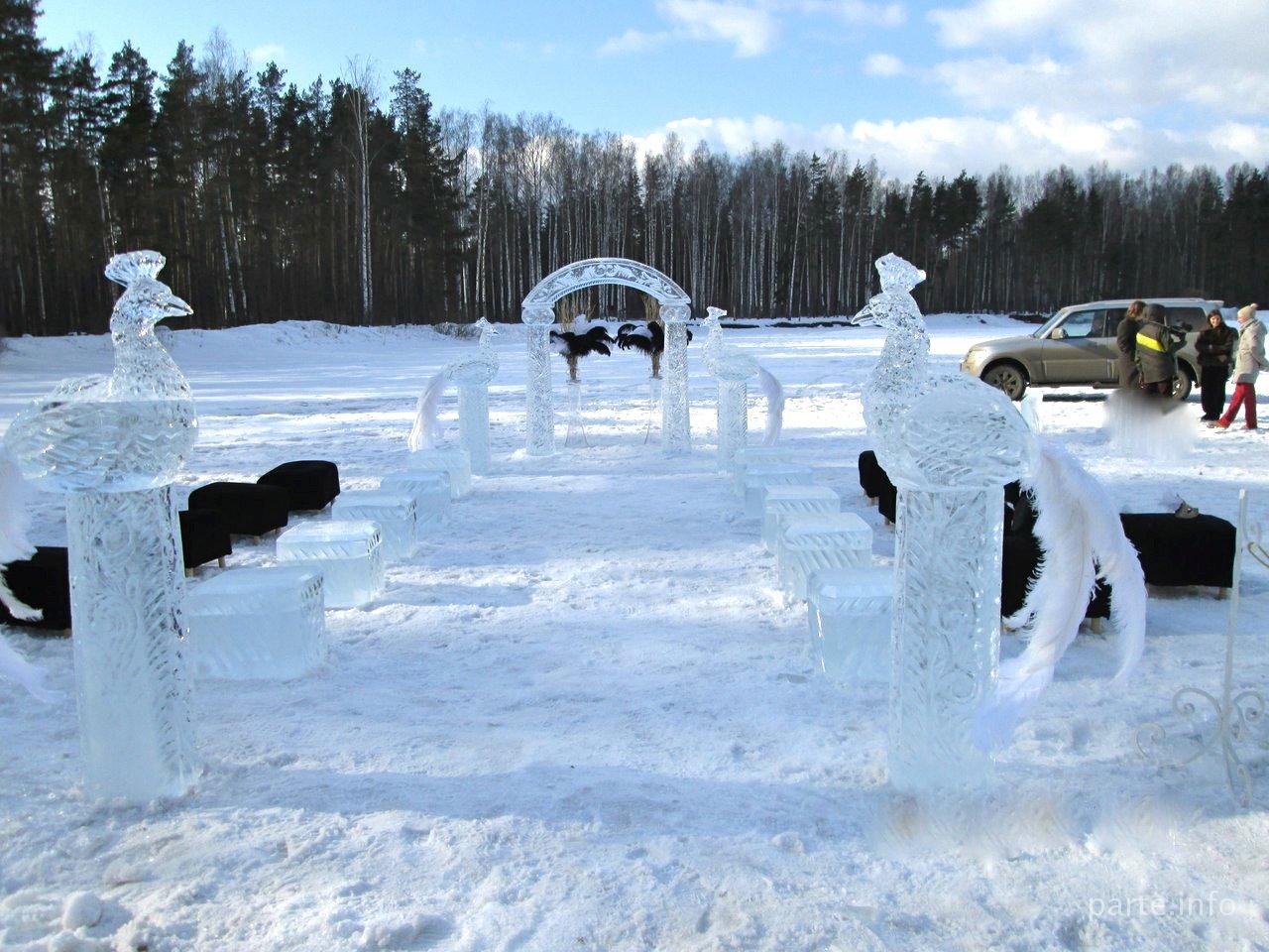 Декор выездной регистрации ледяными скульптурами