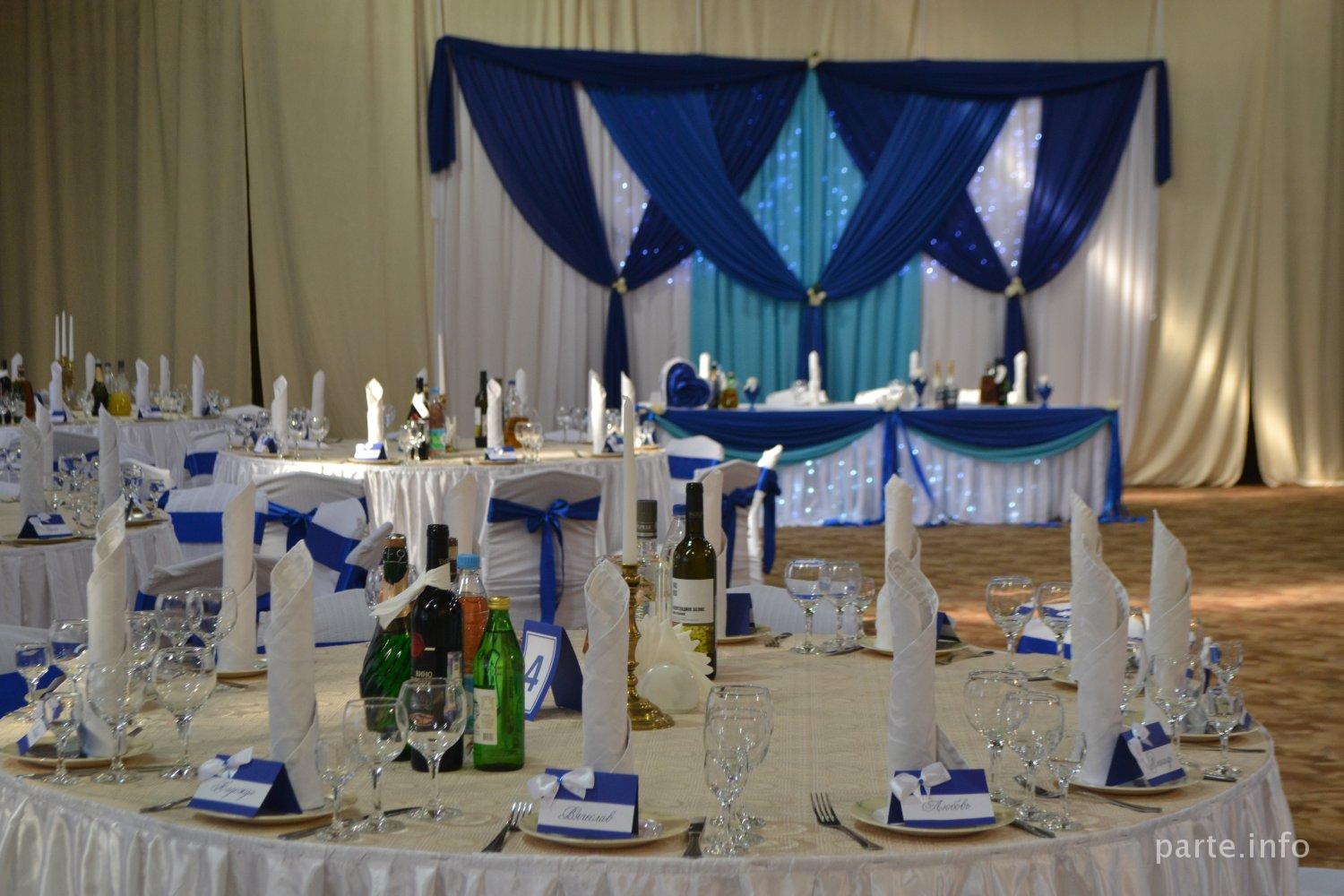 Экотель Снегирек зал на 200 человек в синем декоре